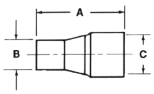 ![]() | male OD, female ID Used as an adapter where a reduction from larger OD to a smaller OD is required. Can be employed in conjunction with any MF, FF or SF style fitting to reduce female BRAZETYTE® end. | ![]() |