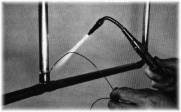 The technique of applying the Flux and the Silver Solder is similar to that used for making joints in copper or copper alloys. A little care is necessary, however, in controlling the heat source to ensure that the temperature does not exceed that required to melt the Silver Solder and make it flow freely; otherwise a heat resistant black oxide film is formed anti the solder will not adhere to the metal. We recommend that the tube, or male portion of the joint, be brought up to a temperature where the alloy begins to flow and then the torch be moved to the female portion of the joint (The BRAZETYTE~ Socket), allowing "Capillary Action" to draw the alloy into the joint. It is also suggested that the brazing alloy be end-ted, as shown in the above photo .